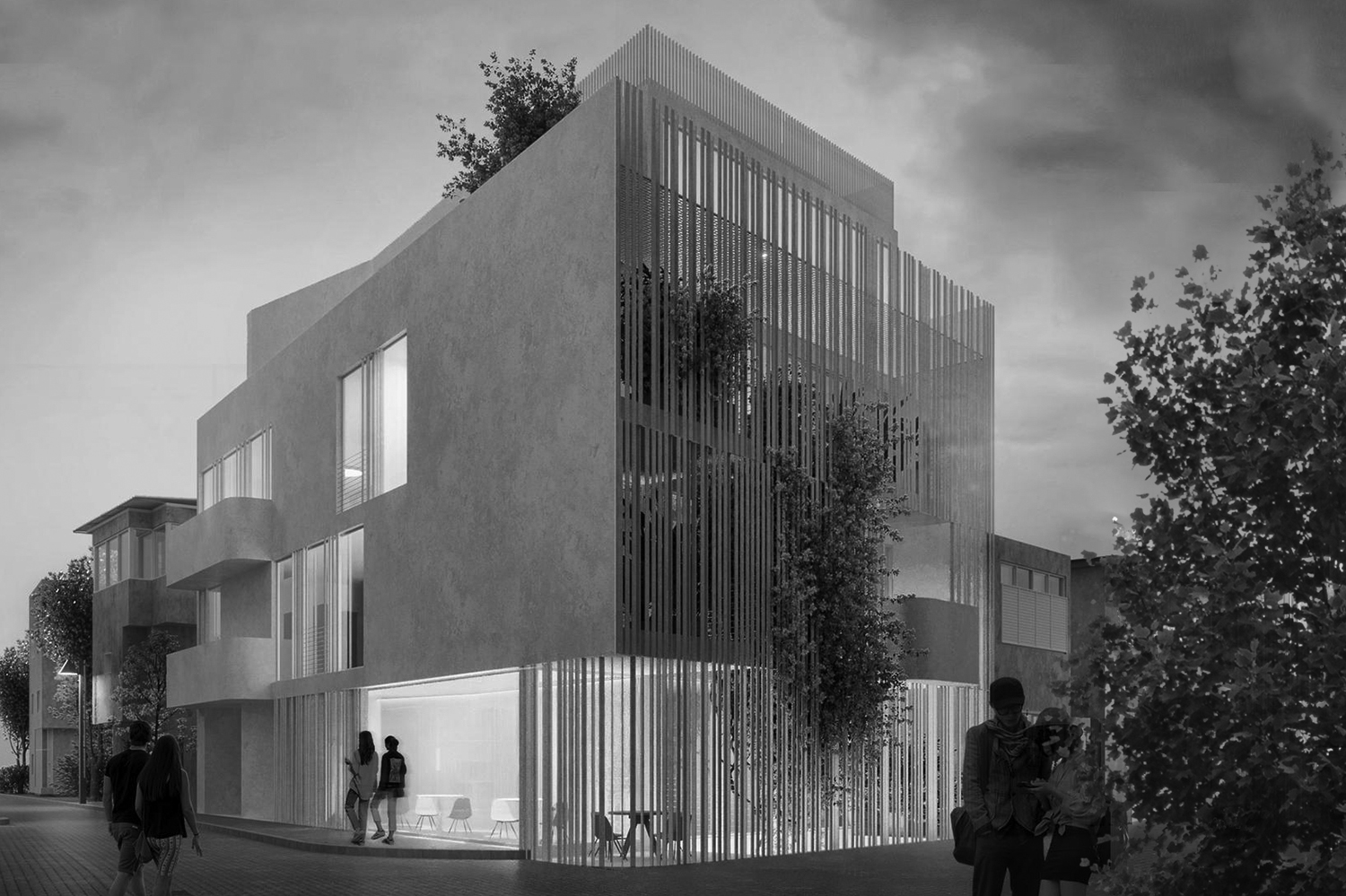 The glass building surrounds the lot with a blurred row, fence, of u-glass, imagined as a garden of wandering plants and herbs that climb and traverse every edge. Y/K building is located between the sea and the Carmel Market in Kerem HaTeimanim, in Hebrew כֶּרֶם הַתֵּימָנִים means the Vineyard of…