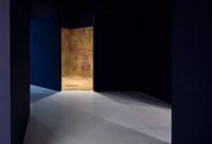 The last room is the blue room; solemn and “foolish”, it is the section dedicated admiratio. The multi-colored marble and granite are colorful graffiti, miniature worlds, expressive faces, lunar landscapes in small geometric-shaped rooms. The delicate overlaid finishing of these microcosms is reflected infinitely in the mirrors facing the walls; the rest is painted in a profound Prussian blue, plunging the visitor into almost fairy tale surroundings.